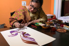 «Вот где дух каллиграфии, — говорит художник Самир Сайех, показывая на длинный текучий след кисти на холсте. — Энергия дает линии равновесие. Источник этой энергии – в глубоких переживаниях и в размышлениях о том, кто ты, что ты за человек. Жизнь, любовь, страх, тревога, стресс... вот эти чувства. Такой набор эмоций движет рукой художника и дает уверенное ощущение осмысленности».