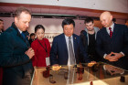 В воскресенье, 22 сентября, выставочную экспозицию проекта «Великая китайская каллиграфия и живопись» посетил Чрезвычайный и Полномочный Посол КНР в РФ господин Чжан Ханьхуэй. Господин посол с интересом осмотрел экспозицию, представленную различными стилями китайской каллиграфии и живописи, а также пообщался с ведущими каллиграфами