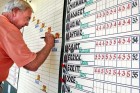 По трибуне, на поле, где играет частный гольф-клуб Коннектикута TPC River Highlands, Дэйв Кениг постоянно ходит из стороны в сторону, то наклоняется, то тянется вверх. Все ради того, чтобы красиво и четко вывести имена гольфистов и набранные ими очки на гигантском табло.
